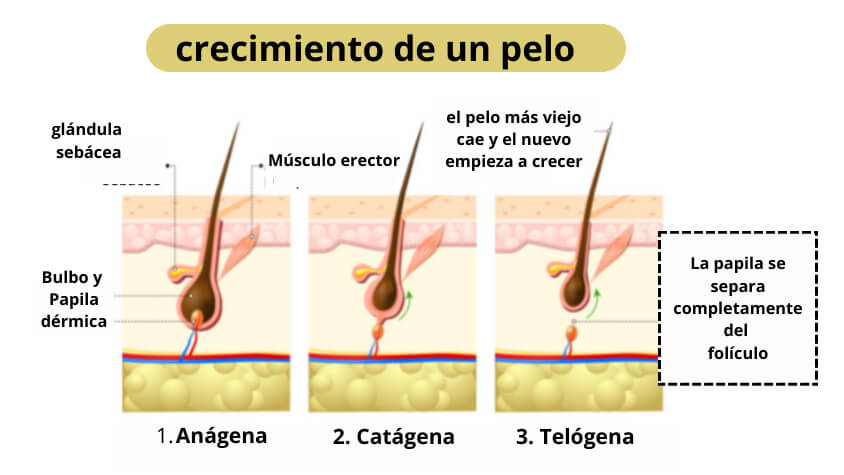 El ciclo natural del cabello. Cuando un pelo muere, se supone que crece otro en su lugar.