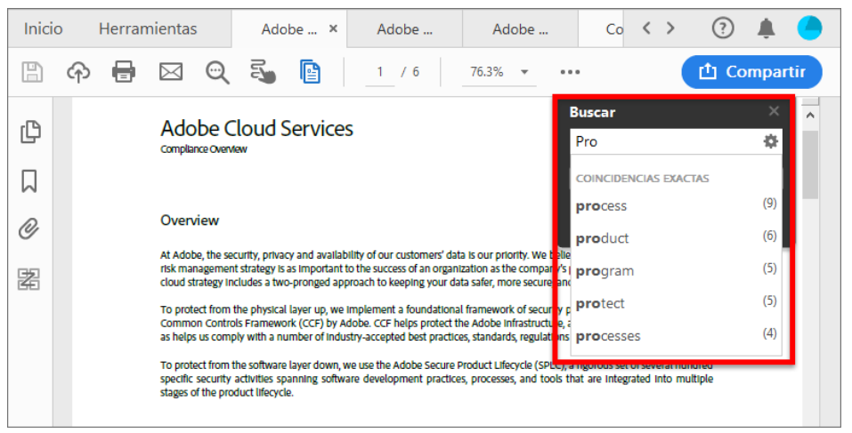 Puede realizar una búsqueda mediante la ventana de búsqueda o la barra de herramientas Buscar, o pulsando Ctrl + F.